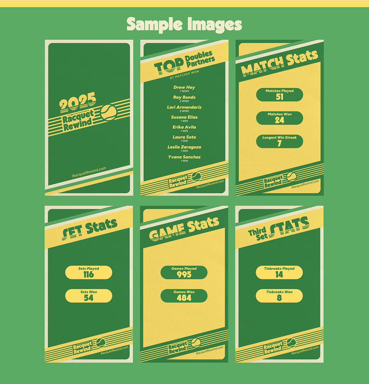 Racquet Rewind is a data-driven passion project created by Brandon Silverstein, essentially Spotify Wrapped for tennis players. Players drop in a URL and instantly generate free, shareable images breaking down their tennis year, from matches won and win streaks to favorite doubles partners and more.